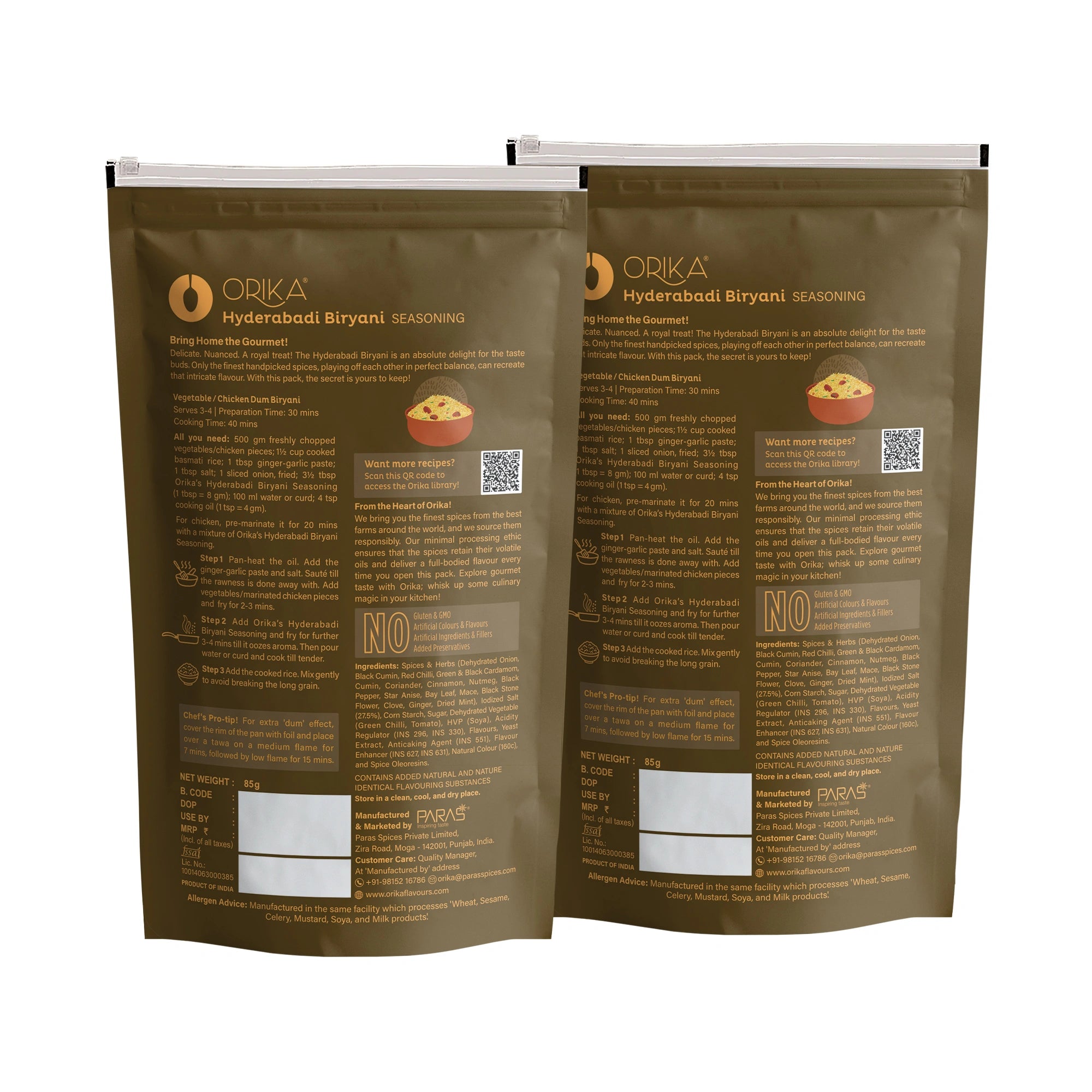 Orika Hyderabadi Biryani, Pack of 2, 85g/each