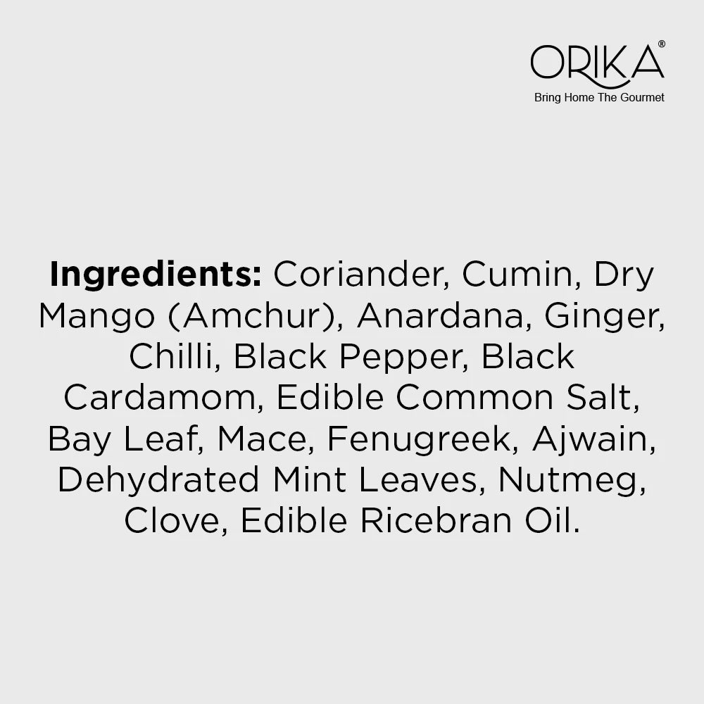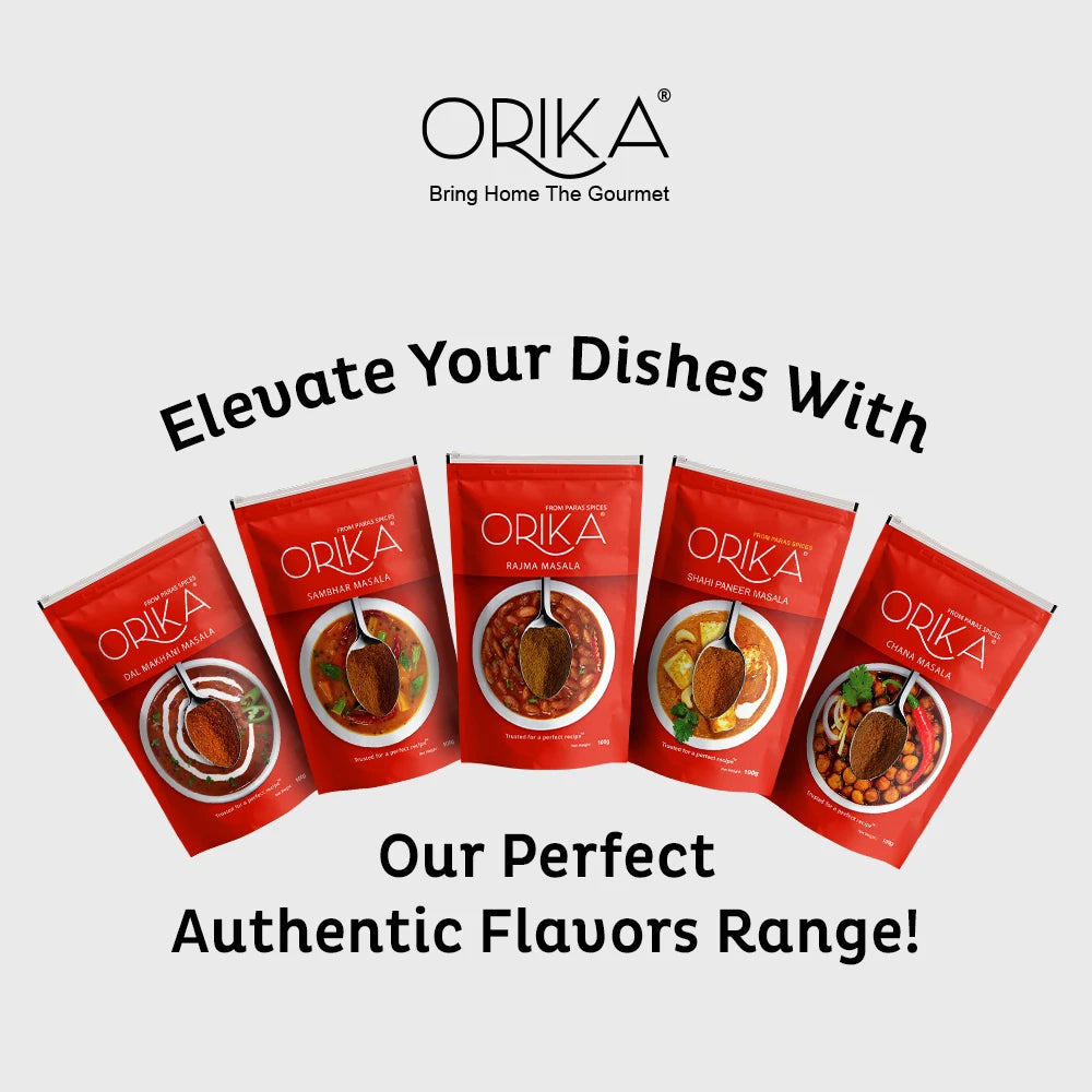 Savour the taste of authenticity with Orika’s Rajma Masala. An evergreen favourite at the Indian kitchens, Rajma features kidney beans in scrumptious, spicy gravy, best paired with rice. Orika’s Rajma Masala is a magical formula to infuse a bold & creamy flavour in this classic recipe. An assortment of most premium & pure varieties of spices, it makes all Rajma dishes taste exquisite.